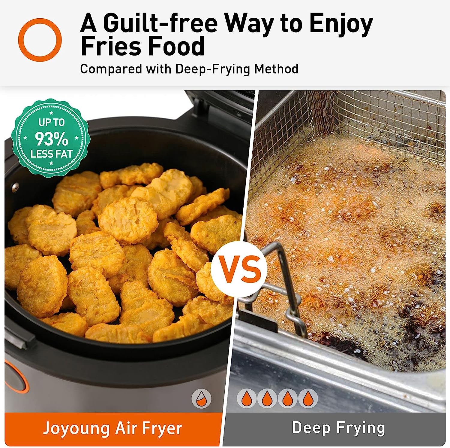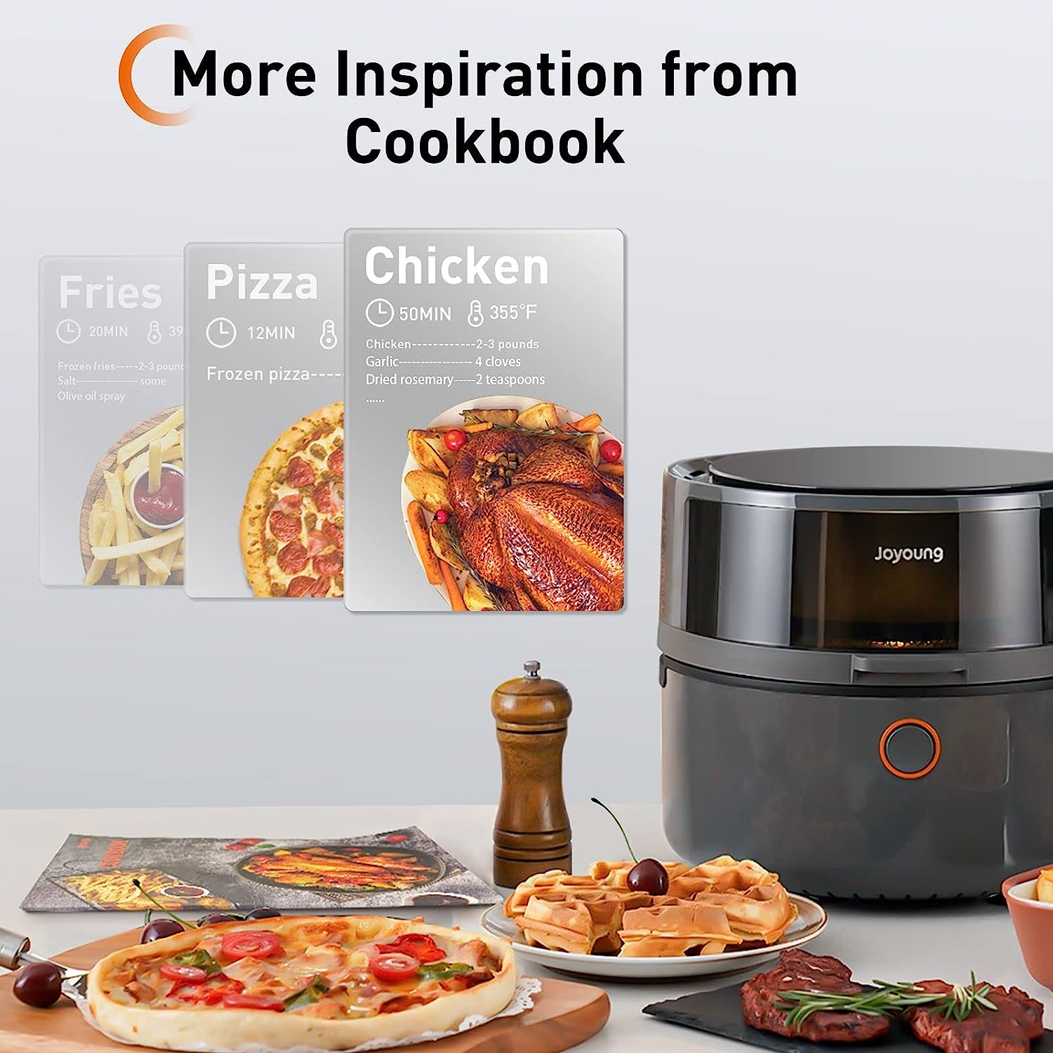 Desde el aperitivo hasta los platos principales, cualquier idea que se te ocurra en la cocina, la freidora de aire Joyoung Lenses Series puede ayudarte a realizarla con un 93% menos de aceite. ¿Hablando de la textura? Apropiadamente crujiente por fuera y deliciosamente tierno por dentro.