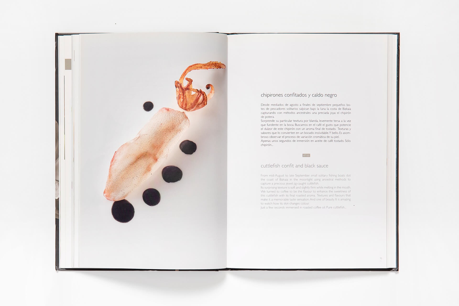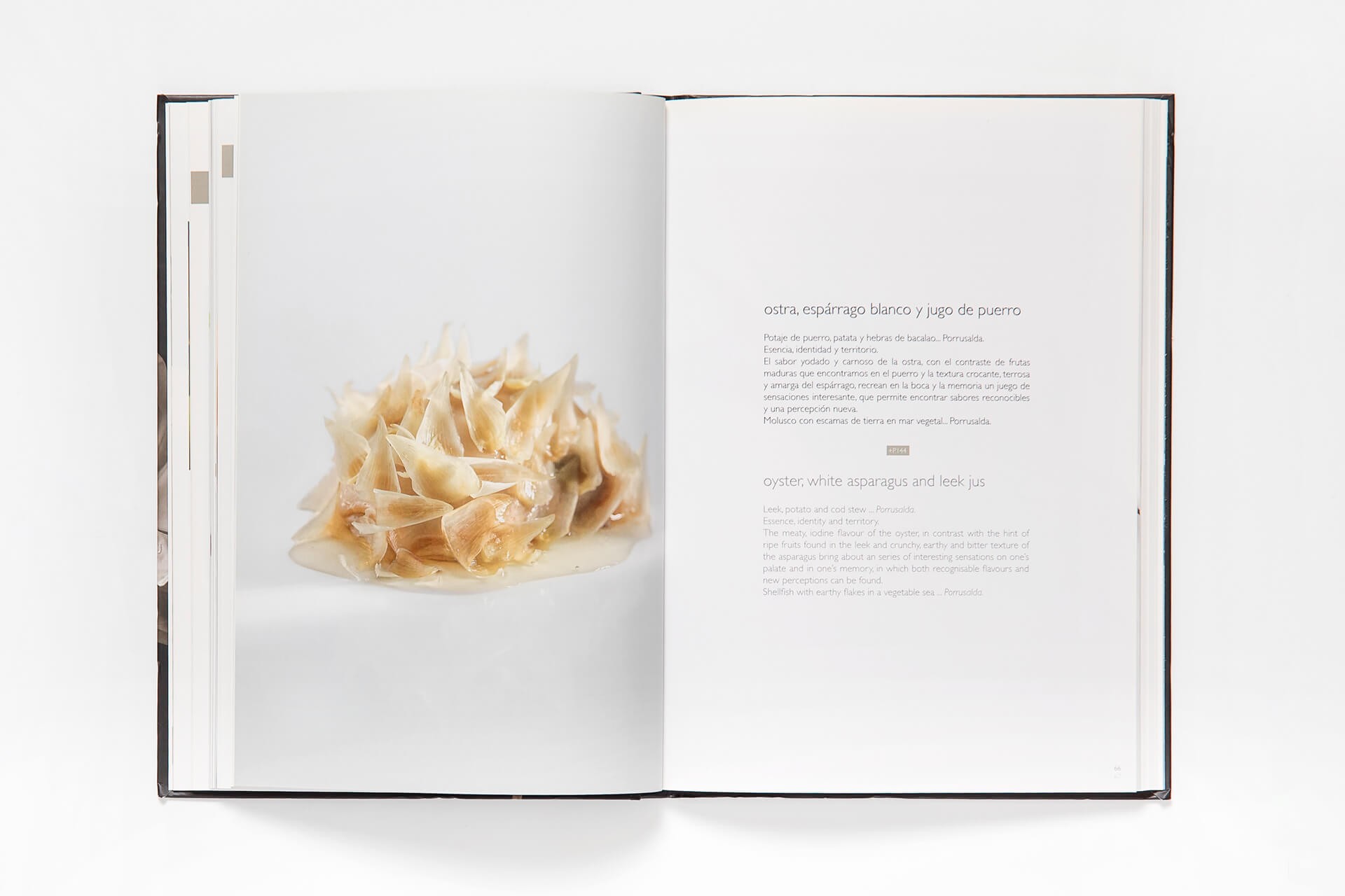 Fiel a su idea de emplear pocos ingredientes en un plato para buscar un resultado bello y sencillo a la vista, describe cómo surge y qué le sugiere cada uno de sus platos; vegetales, ligeros, esenciales, llenos de aromas y texturas. Una completa presentación donde el toque dulce, Sweeture, un símbolo dentro de su particular visión culinaria, un concepto ligero, saludable y actual, redondea este trabajo.
